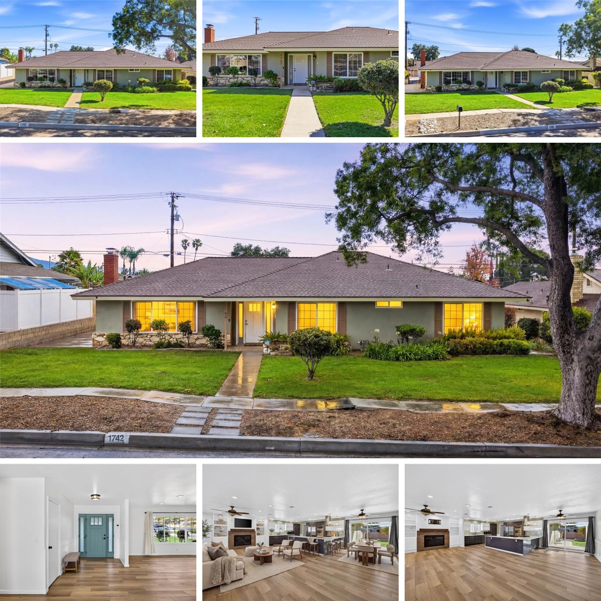 Stunning Fully Remodeled Single-Story Home in North Upland! Situated on a beautiful tree-lined street, this exceptional 4-bedroom, 2.5-bath residence showcases thoughtful upgrades and modern design throughout. Enter through the high-end shaker-style steel front door into an open, light-filled floor plan featuring luxury composite flooring and recessed lighting. The spacious living room is warm and inviting, highlighted by a contemporary stone fireplace, custom built-in bookshelves, and an abundance of natural light. The designer kitchen is a true showstopper, appointed with premium Dacor appliances, custom cabinetry, quartz countertops, and a wine/beverage refrigerator — perfect for both everyday living and entertaining. Enjoy beautifully updated bathrooms with sleek, modern finishes. Major improvements include a new roof and SELLER OWNED SOLAR PANELS, providing both value and energy efficiency. Step outside to a nicely landscaped backyard offering a variety of fruit trees, including avocado, nectarine, apricot, and grapefruit, along with a lovely covered patio ideal for relaxing or hosting gatherings. Car enthusiasts and adventurers will appreciate the large gated RV parking complete with electrical hookup, water, and a dump station, plus a long driveway with ample parking. Located within the highly desirable Pepper Tree School District, this turnkey home combines style, comfort, and convenience — truly move-in ready!