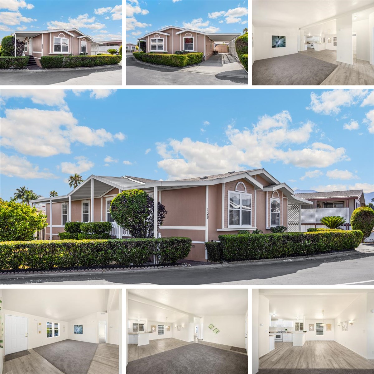 Discover the best of 55 plus living at El Rancho Verde MHP in north Rialto. This exceptional home offers the rare luxury of a front porch overlooking your own front yard! Move in ready with a fresh coat of both exterior and interior paint, newly installed laminate flooring and carpet. The living room, dining room and kitchen are open space concept for comfortable living and entertaining. The primary bedroom includes an additional area that can serve as an office or sitting room. The primary room also includes two closets as well as an ensuite bathroom with a soaking tub and walk in shower. The additional bedrooms are spaced on the other side of the home for optimal privacy and both offer laminate flooring and large closets. Complete with carport, storage shed and a spacious back yard. Living at El Rancho Verde MHP offers a resort worthy lifestyle with clubhouse, pool, BBQ area, lots of activities and a well maintained community. With affordable space rent and a turn key property, your new home awaits!