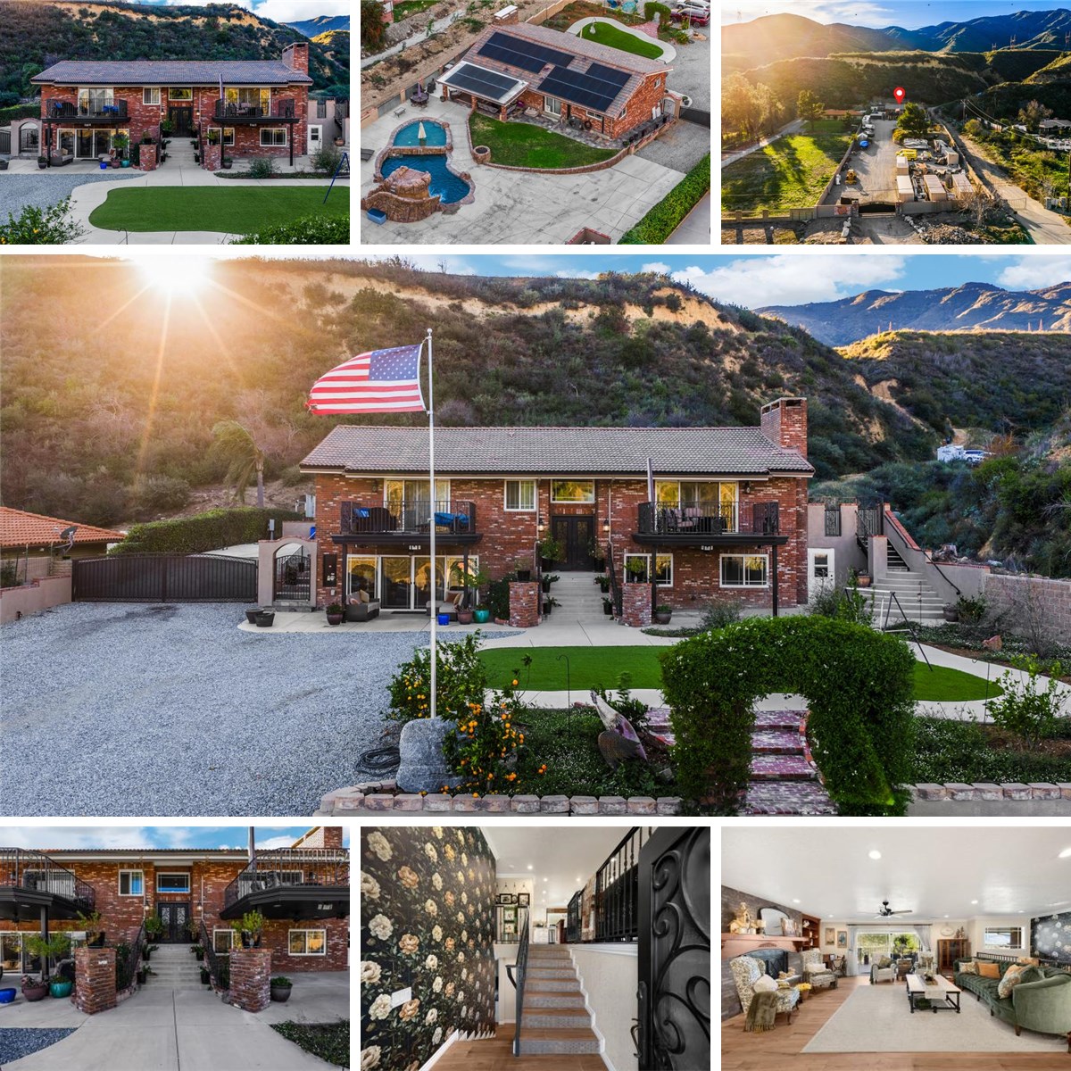 Welcome to a truly one-of-a-kind Lytle Creek retreat, ideally located on the border of Lytle Creek and Fontana, offering the perfect blend of mountain privacy, spacious living, and commuter convenience. Set against the foothills of the San Bernardino Mountains, this unique property feels like a private getaway while still providing easy access to Fontana, major freeways, shopping, and employment centers. Inside, the home features a custom kitchen and a cozy living room with a fireplace, built-in bookshelves, and direct access to an outdoor deck—perfect for relaxing or entertaining. The downstairs family and dining room combo offers flexible living space, and an additional large family room presents endless possibilities as a game room, oversized primary suite, or potential additional bedrooms. Kitchen hookups are available in this area and have been virtually staged to showcase the potential. The oversized laundry room includes a custom sink, while the primary bedroom and bath provide a comfortable private retreat. The upgraded full hall bathroom is beautifully finished with brushed brass fixtures and Swarovski crystal knobs. A downstairs bathroom is handicap-equipped, featuring a premium walk-in tub with 27 jets, infrared lighting, and heated water functionality for year-round comfort. Step outside to your resort-style backyard, highlighted by a stunning rock pool and spa with grotto, waterfall, Baja shelf, lighting, fire features, and a pool slide—an entertainer’s dream. Additional outdoor amenities include a covered patio and a front automatic solar-powered gate for added privacy and convenience. Car enthusiasts, hobbyists, or business owners will appreciate the massive workshop/garage, equipped with 220V power, room for up to six vehicles, and a working car lift—a rare and valuable feature. The solar system is fully paid off, adding long-term efficiency and savings. This property offers a rare opportunity to enjoy Lytle Creek living—known for its open space, scenic surroundings, and outdoor recreation—while staying just minutes from the amenities of Fontana. A truly special home with flexibility, function, and lifestyle all in one.