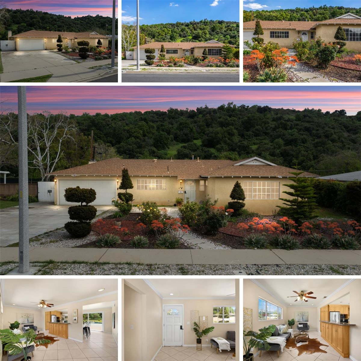 If nature brings you joy, then the views from this home will fill your cup. Set at the base of South Hills Park with stunning unobstructed views. The park itself has over 200 acres including hiking & horse trails, playground and dog park. The backyard has a gorgeous pool and spa making it feel like you have your very own nature retreat. This single story home has 4 bedrooms, 2 bathrooms offering an open concept layout. The quaint living room flows seamlessly into the kitchen which includes an island cooktop, sink, counter bar and a breakfast nook with sliding glass window bringing in natural light. The jewel of the home is the family room. The family room is large and includes a dining area, beautiful fireplace and breathtaking views from the windows. The French doors open to the backyard bringing the outdoors in. The property sits on a large 11,997 square foot lot with plenty of room for activities and outdoor living. Not only are the pool and spa in the backyard, there is also a covered gazebo for shaded relaxation, hardscape patio area, large grassy area, a lemon tree and a storage shed. Practical features include fully paid-off solar panels to help lower utility costs, drought-tolerant landscaping in the front, and an oversized driveway with RV potential parking. The home is located in Glendora knows as the “Pride of the Foothills.” The city is known to have a small town charm and offers a historic downtown area known as the Glendora Village with great restaurants, shops and local businesses. The property is located near major freeways allowing for an easy commute. If nature in the city is your dream, then you have just found the your home!