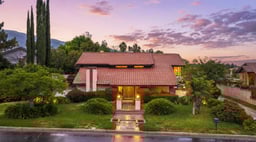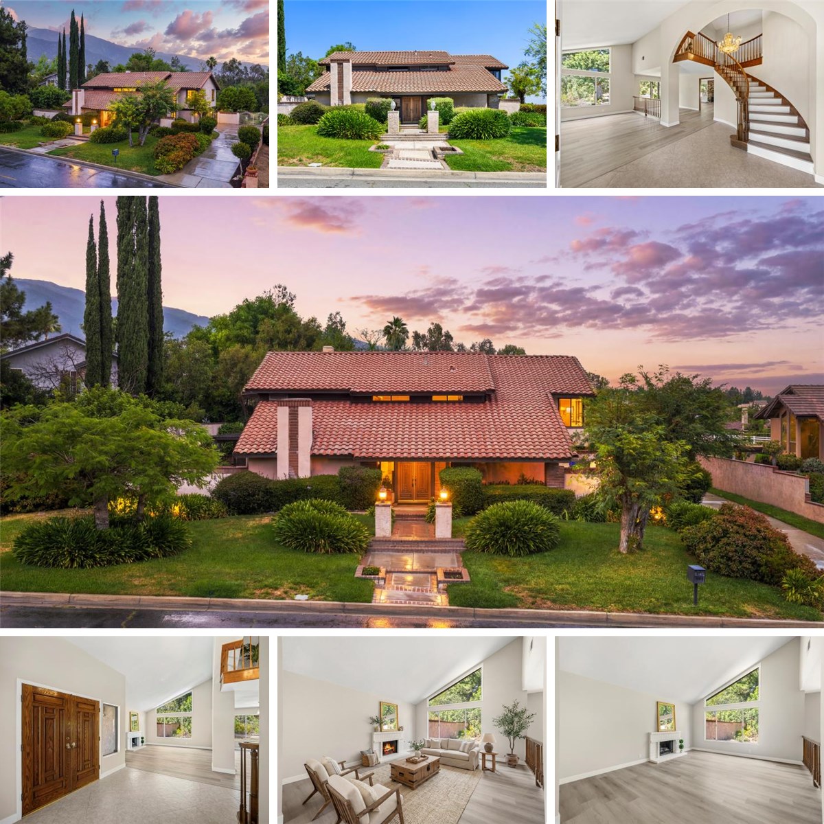 Beautifully refreshed 4-bedroom, 3-bath home on a spacious half-acre lot with stunning San Gabriel Mountain views. Freshly painted and featuring new luxury vinyl flooring throughout, this home offers a bright, inviting floor plan designed for comfortable living and entertaining. Double-door entry opens to a sun-filled living room with fireplace and adjoining dining area. The spacious kitchen is appointed with stainless steel appliances, dual ovens, tile countertops, and ample prep space, and opens to a warm family room with a charming brick fireplace. A large first-floor bedroom, currently used as an office, adds flexibility. Upstairs features a generous bonus room, 3 additional bedrooms, and 2 baths, including a spacious primary suite with a private view deck and a spa-inspired bath with soaking tub, separate shower, vanity, and dual closets. The huge backyard is ideal for entertaining with an expansive patio, sparkling pool, and spa. Additional amenities include an oversized 3-car garage and ample driveway parking. Conveniently located near freeways, shopping, Victoria Gardens, dining, parks, hiking, skiing, and top-rated schools.