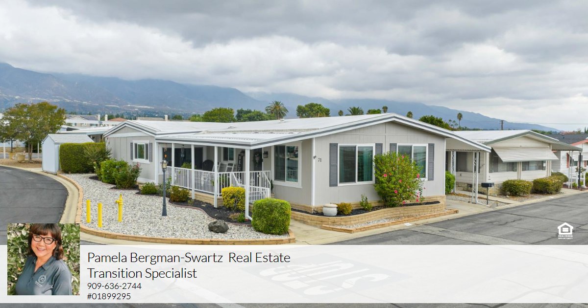 Location, Location, Location. Welcome to Ramona Villa Estates, A Highly Desired 55+ Community. Pride of ownership shines through this wonderful two-bedroom, two-bath manufactured home. This well maintained home offeris approximately 1,440 sq. ft of living space on a desirable corner lot with stunning mountain views. From the moment you arrive, you'll notice the thoughtful updates that make this home move-in ready. Extensive improvements provide lasting value and peace of mind, including: professional leveling with 36 new foundation support piers, energy efficient dual pane windows, a new reinforced front porch with outdoor carpeting and updated entry stairs at front and rear of home. Exterior paint and refreshed landscaping within the last 3 years. Step inside to high ceilings and an inviting open floor plan, featuring a spacious formal living and dining rooms with built in cabinetry and laminate flooring. The kitchen opens up to a spacious living area that features built-in book shelves with two desk/work areas. The kitchen offers corian countertops and an electric cooktop stove, blending style with functionality. The primary suite includes two walk-in closets, currently being used as a quilting/craft room. The adjacent primary bathroom has a large soaking tub and separate shower. A well appointed guest bedroom is located near a full bath with shower, providing comfort for visitors. Additional highlights include indoor laundry room with closet that can be used as an additional pantry and/or storage space. Note: Square footage is estimated at 1,440 sq. ft. A previous owner completed an addition. Buyer and Buyer's Agent to verify all information and conduct due diligence. This home is a rare find in one of the area's most desirable senior communities. Schedule your showing today. Please note, park approval is required.